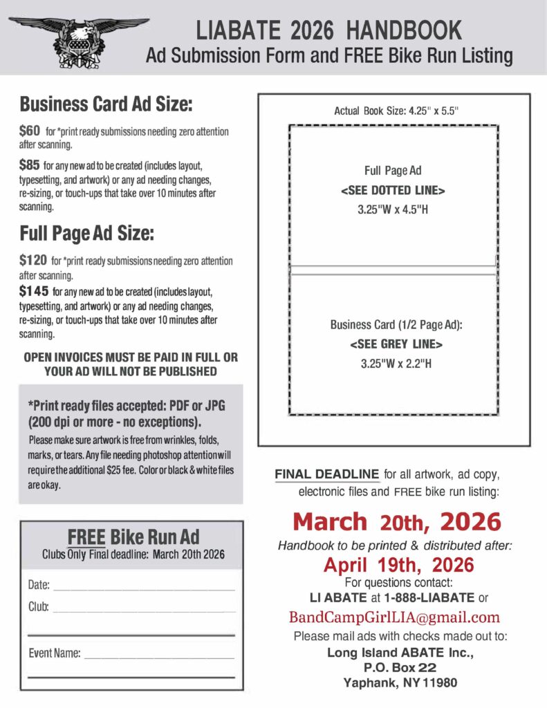 UPCOMING LONG ISLAND ABATE EVENTS